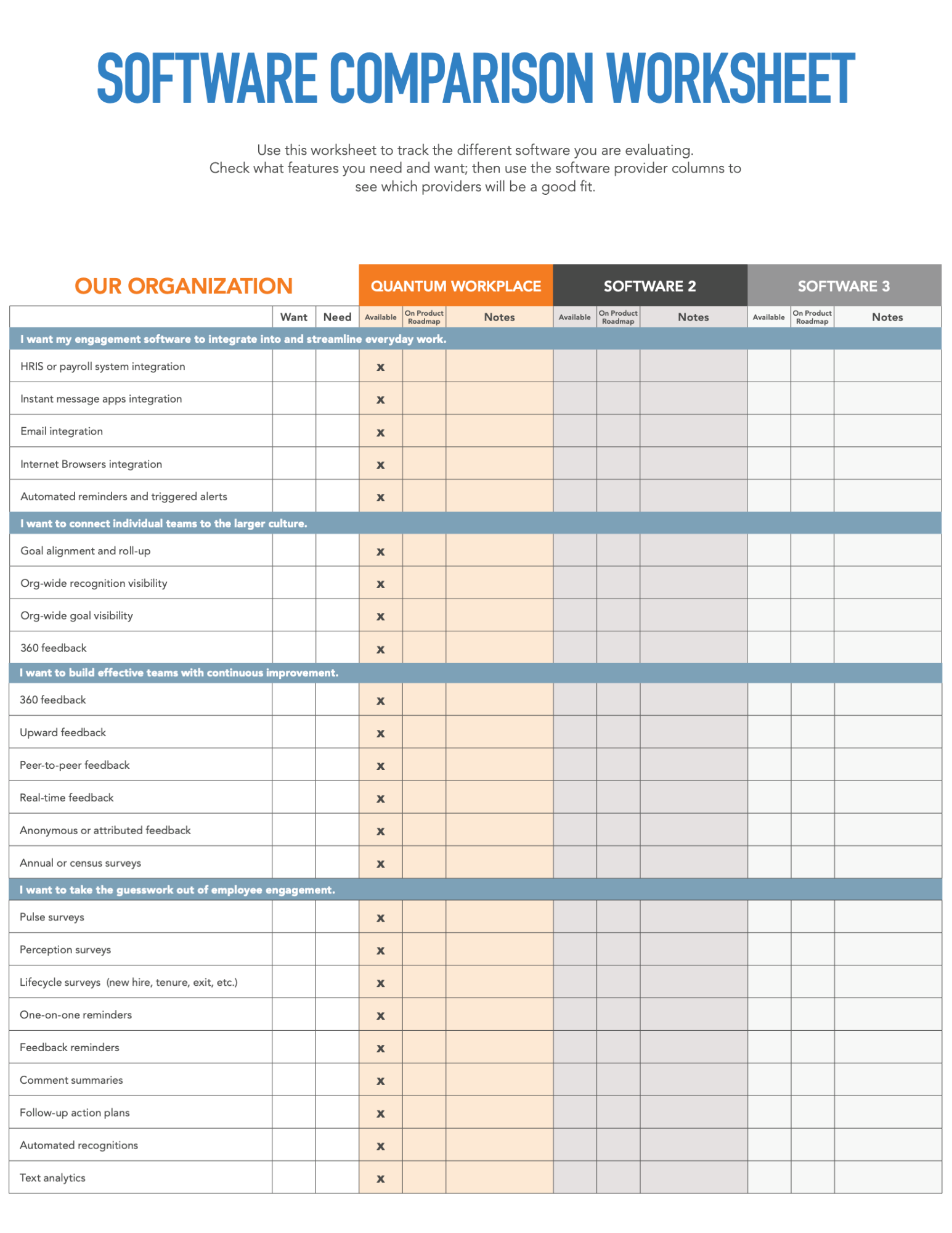 This buyer’s guide will help you decide which employee engagement software is best for you and your organization. It includes: