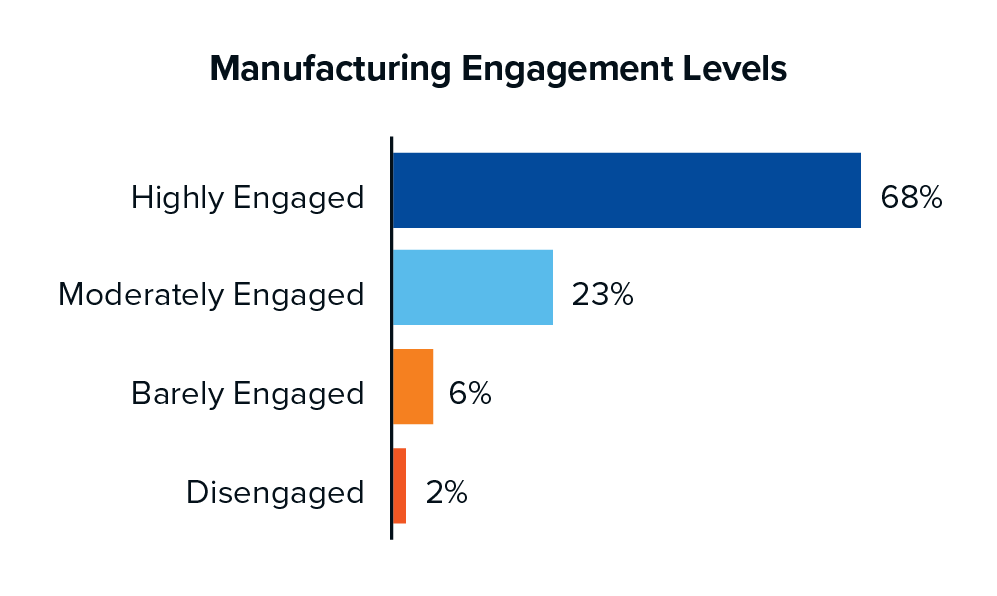 68% of manufacturing workers are considered highly engaged, which can be attributed to: