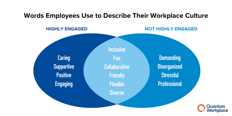 But disengaged employees have different thoughts. A few words disengaged employees use to describe their culture include: